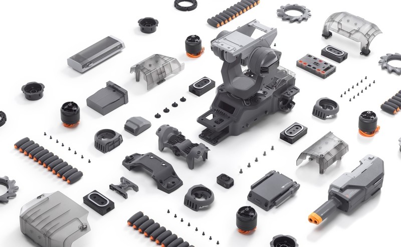 在“理解”、“处理”信息之后,S1可利用强有力的机械组件轻松执行各类任务。定制的M3508I 无刷电机,内置集成式 FOC 电调,输出扭矩高达 250 mN·m;竞技类机器人上常见的麦克纳姆轮亦成为 S1 的标配。轮组由 4 个各含 12 个辊子的麦克纳姆轮构成,可以轻松实现全向平移及任意旋转等灵活走位,配合前桥悬挂可最大限度降低行驶时的车身震动及车轮磨损;大疆标志性的机械云台采用无刷直驱电机,控制精度高达±0.02°,即便是在高速运动中也能保证影像稳定,上下 65° 以及横向 540° 的转动范围则大大拓展了视野。发射器采用水晶弹和红外光束两种发射方式。红外光束仅通过音效和震动作为攻击提示,安全性高;水晶弹适合追求真实竞赛体验的用户,内置的射速检测装置可将水晶弹射速控制在安全限速之下。